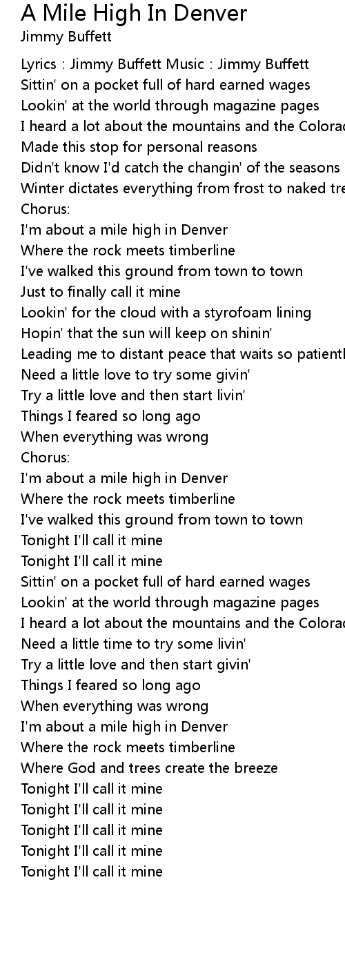 | Song | A Mile High In Denver |