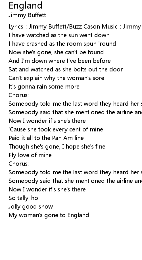| Lyrics: Jimmy Buffett Buzz Cason Music: Jimmy Buffett Buzz Cason | |