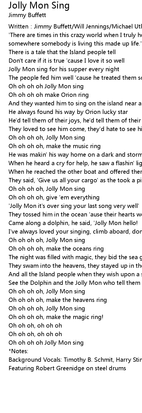 | ' Jolly Mon it' s over sing your last song very well' | |