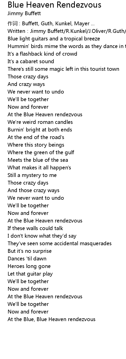 | 作词 : Buffett, Guth, Kunkel, Mayer ... | |