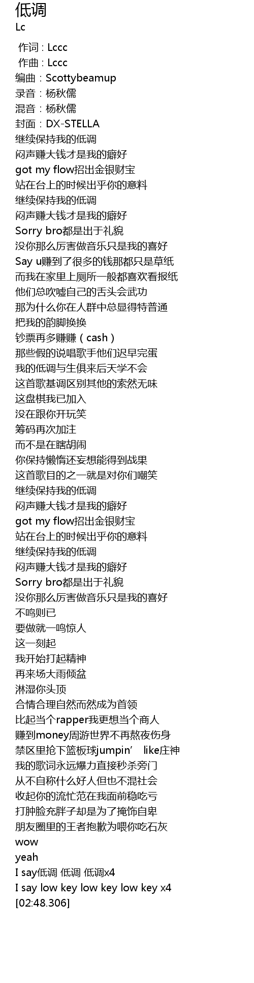 | [00:13.135] | jì xù bǎo chí wǒ de dī diào |