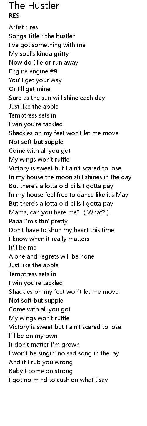 | [01:13.07] | But there' s a lotta old bills I gotta pay |