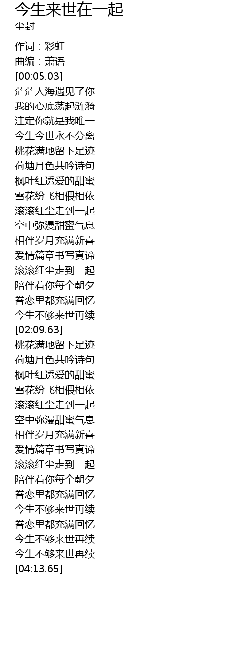| [04:03.48] | 今生不够来世再续 |