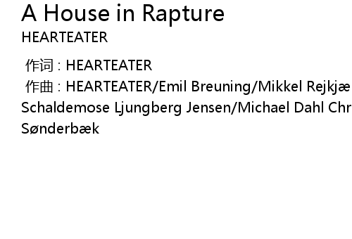 | [00:00.000] | 作曲 : HEARTEATER/Emil Breuning/Mikkel Rejkjær Clausen/Emil Schaldemose Ljungberg Jensen/Michael Dahl Christensen/André Frederik Sønderbæk |