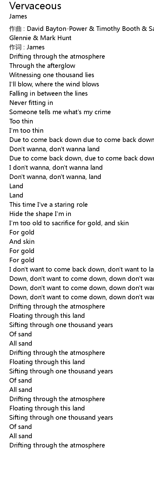 | Down, don' t want to come down, down don' t want to land | |