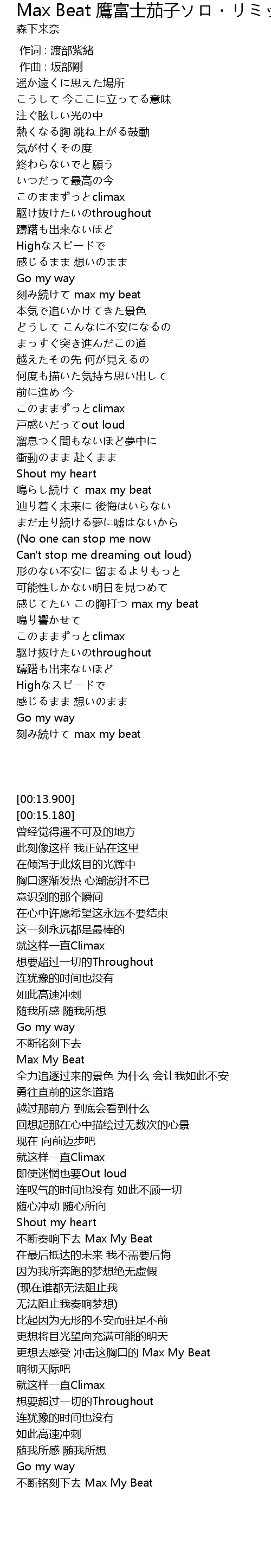 | [03:03.935] | 感じてたい この胸打つ max my beat |
