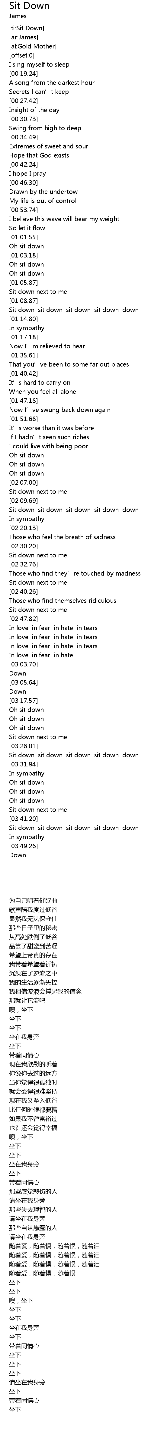 | [ti:Sit Down] | |