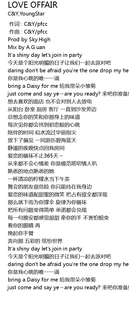 | [01:32.520] | It'a shiny day let's join in party 今天是个阳光明媚的日子让我们一起去派对吧 |