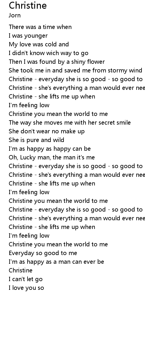 Christine - everyday she is so good - so good to me |