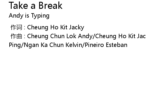 | [00:00.000] | 作曲 : Cheung Chun Lok Andy/Cheung Ho Kit Jacky/Cheung Man Ping/Ngan Ka Chun Kelvin/Pineiro Esteban |