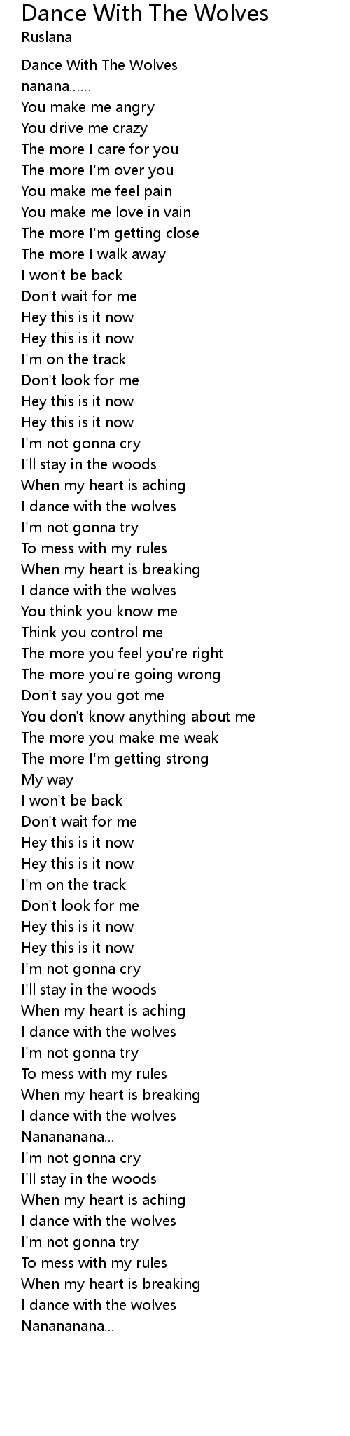 | [02:54.29] | I dance with the wolves |