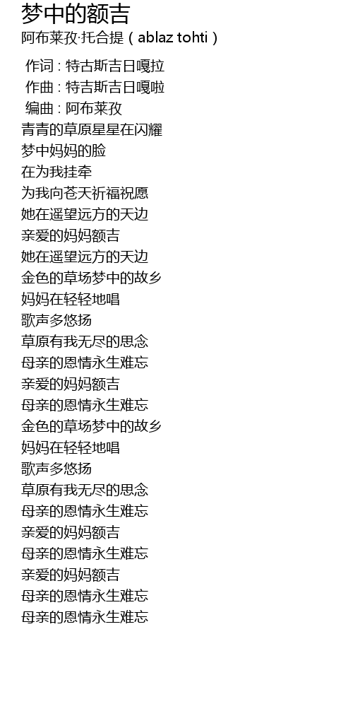 | Song | 梦中的额吉 |