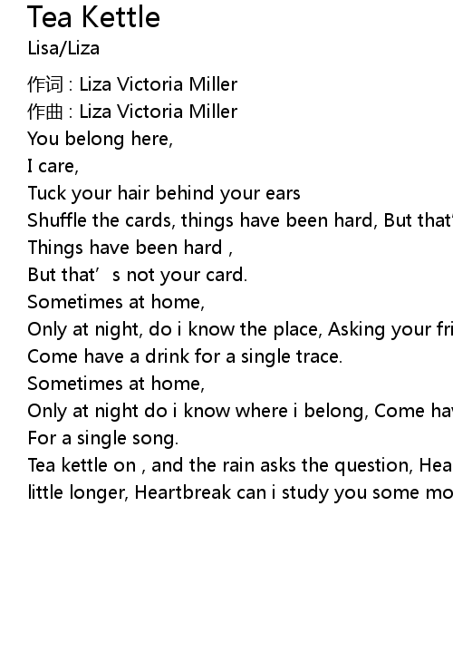 | Song | Tea Kettle |