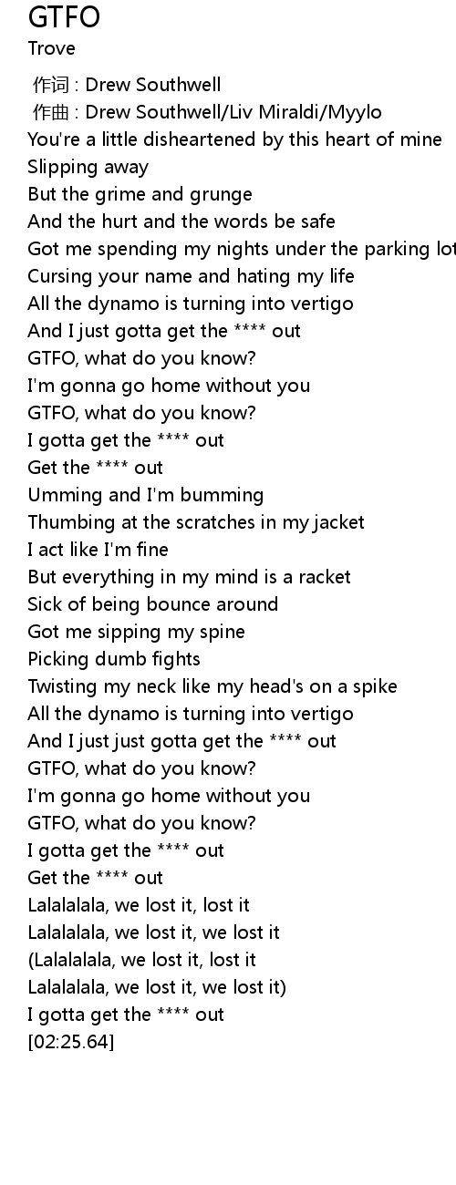 | [02:17.23] | Lalalalala, we lost it, we lost it |