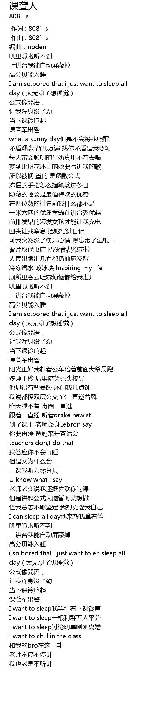 | [02:20.954] | I want to sleep我等待着下课铃声 |