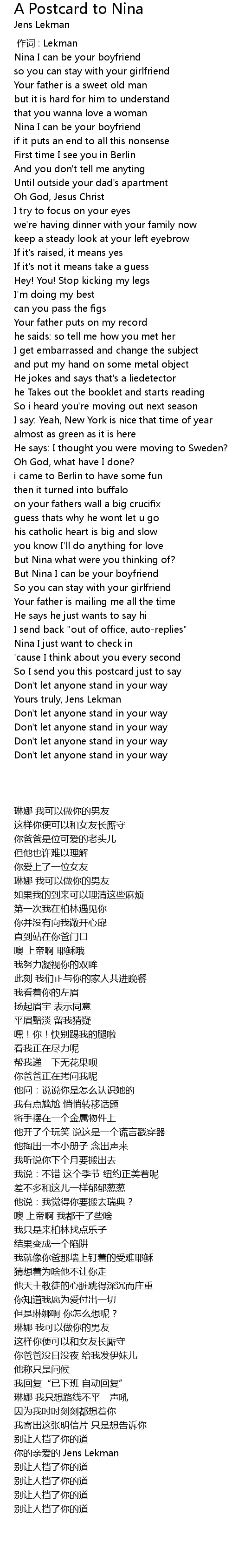 | Song | A Postcard to Nina |