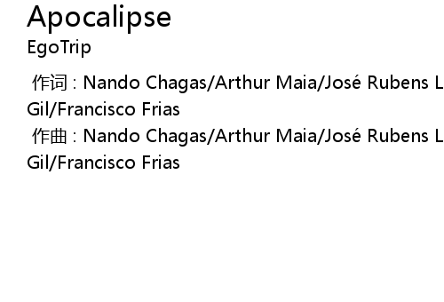 | [00:00.000] | zuo qu : Nando Chagas Arthur Maia Jose Rubens Lopes Pedro Gil Francisco Frias |