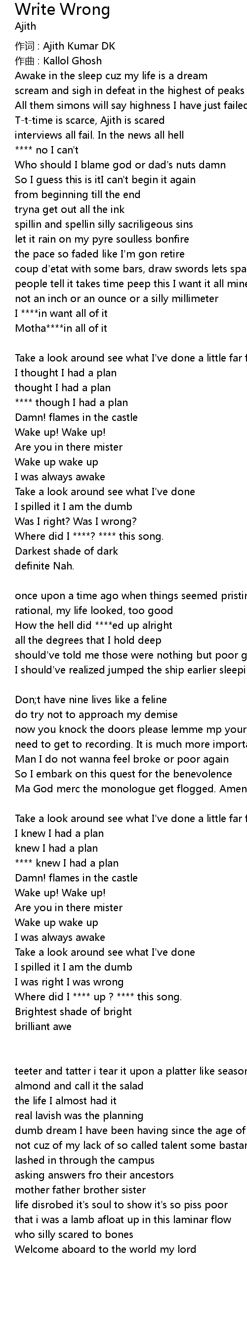 | Where did I **** up ? **** this song. | |