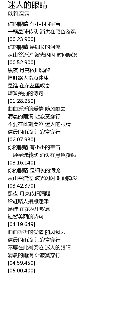 | [04:39.120] | 不要在此刻哭泣 迷人的眼睛 |