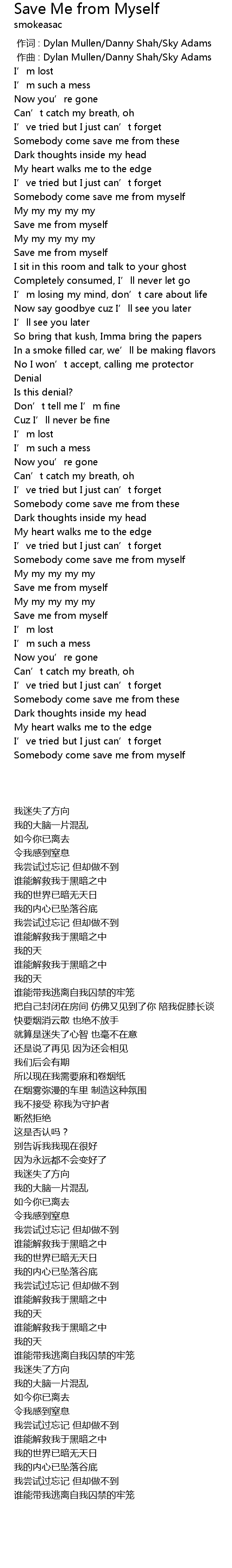 | [00:43.77] | Save me from myself |