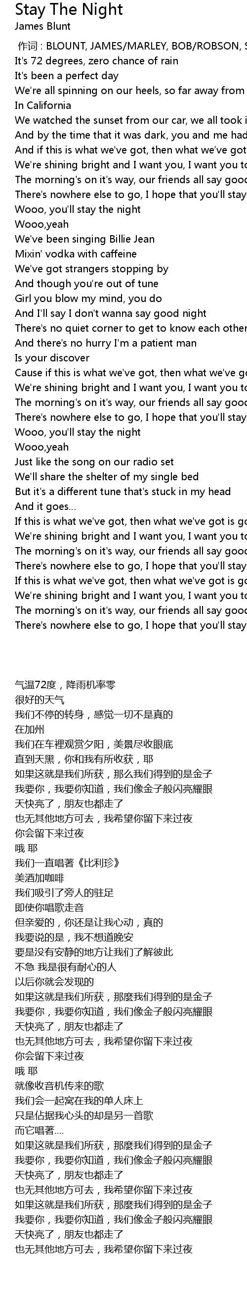 | [00:00.00] | 作词 : BLOUNT, JAMES/MARLEY, BOB/ROBSON, STEVE/TEDDER, RYAN |