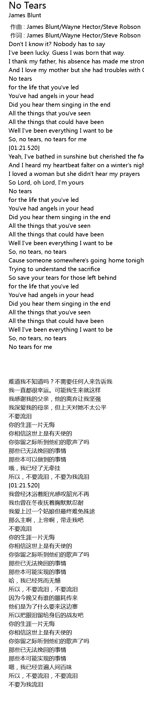 | [00:01.00] | 作词 : James Blunt/Wayne Hector/Steve Robson |