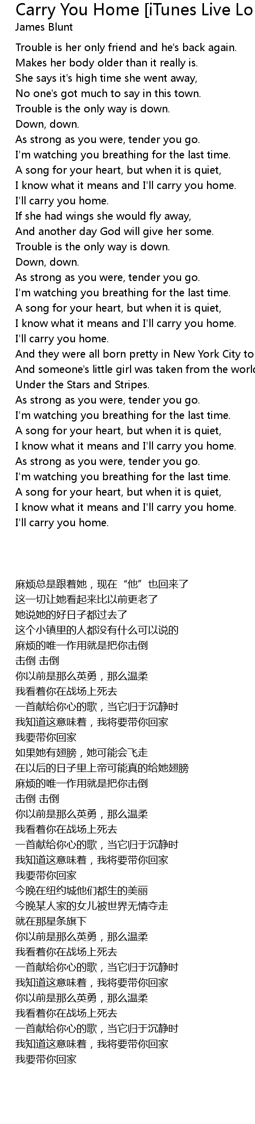 Carry You Home [iTunes Live London Festival '08] Lyrics