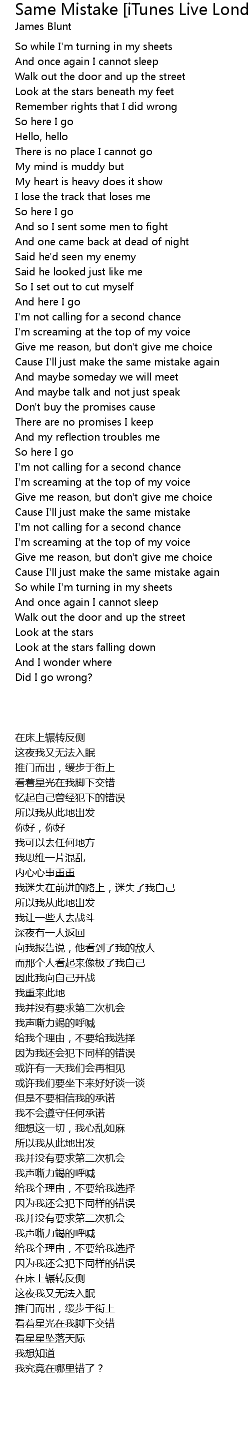 Same Mistake [iTunes Live London Festival '08] Lyrics