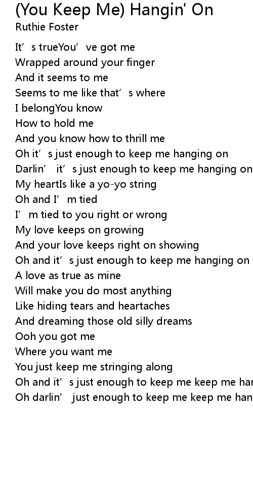 | Oh darlin’ just enough to keep me keep me hanging on hanging on hanging on |