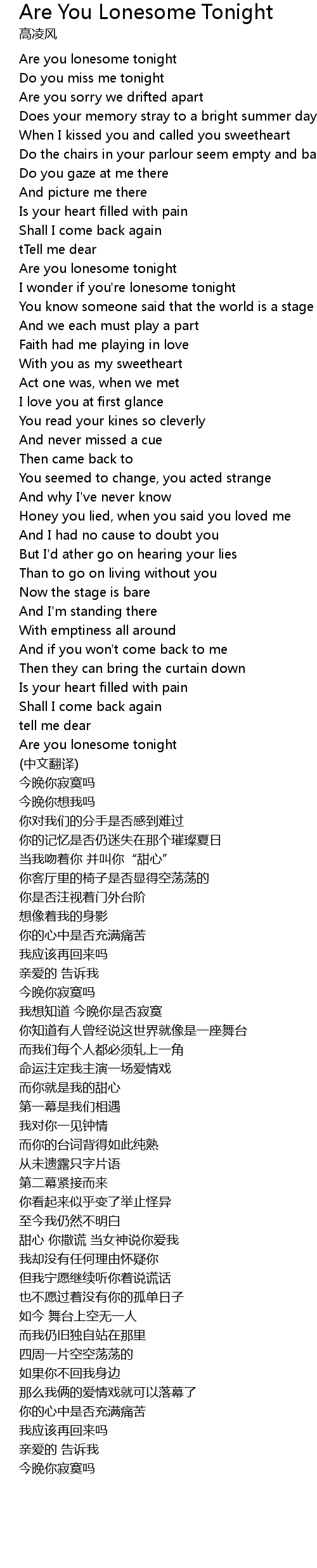 | Are you lonesome tonight | |