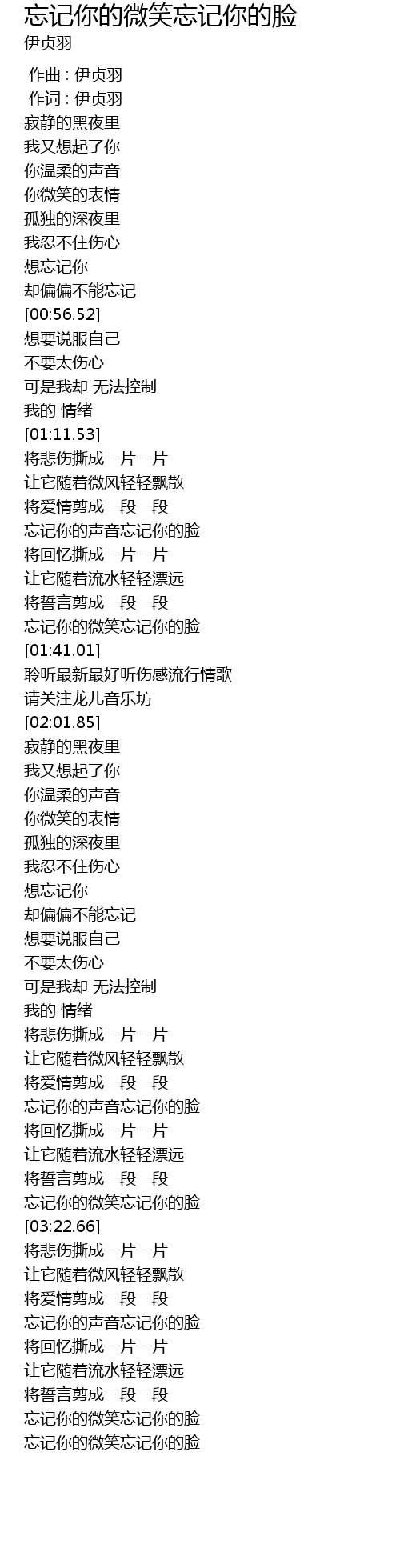 | [03:48.79] | 忘记你的微笑忘记你的脸 |