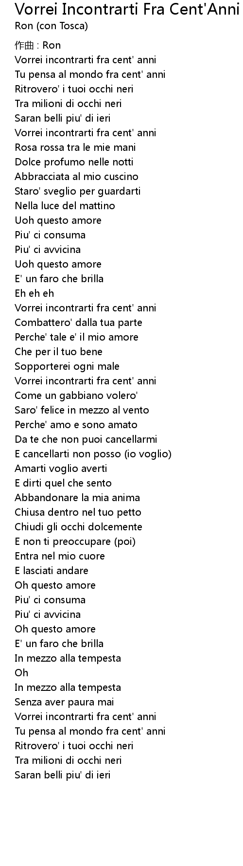 | Song | Vorrei Incontrarti Fra Cent'Anni |