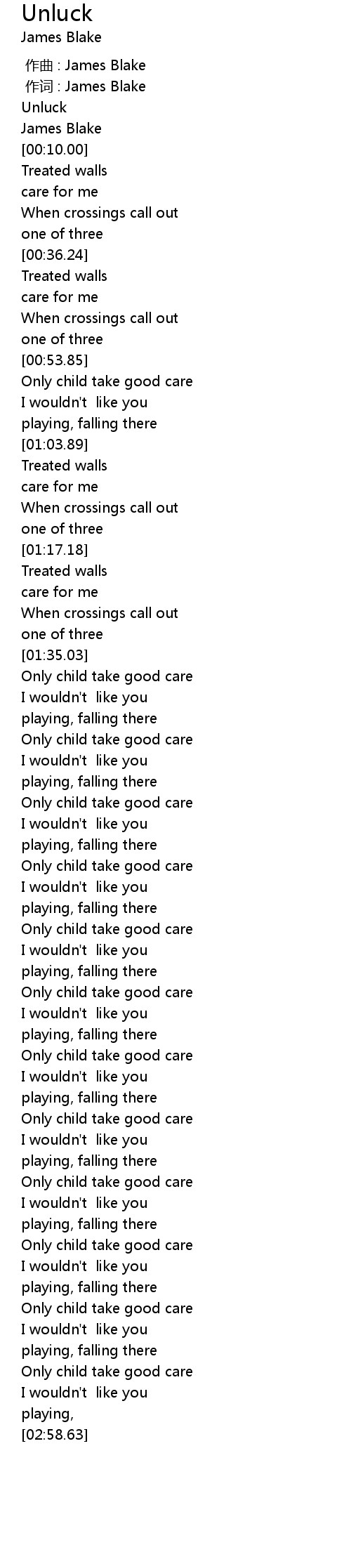 | [00:00.00] | 作曲 : James Blake |