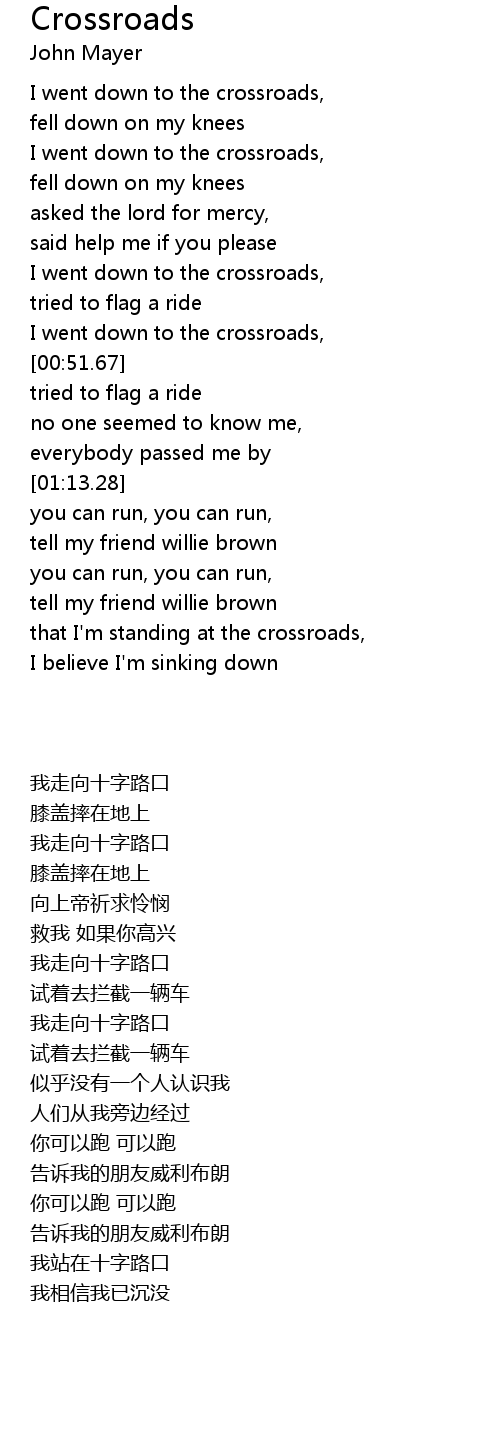that I'm standing at the crossroads, |