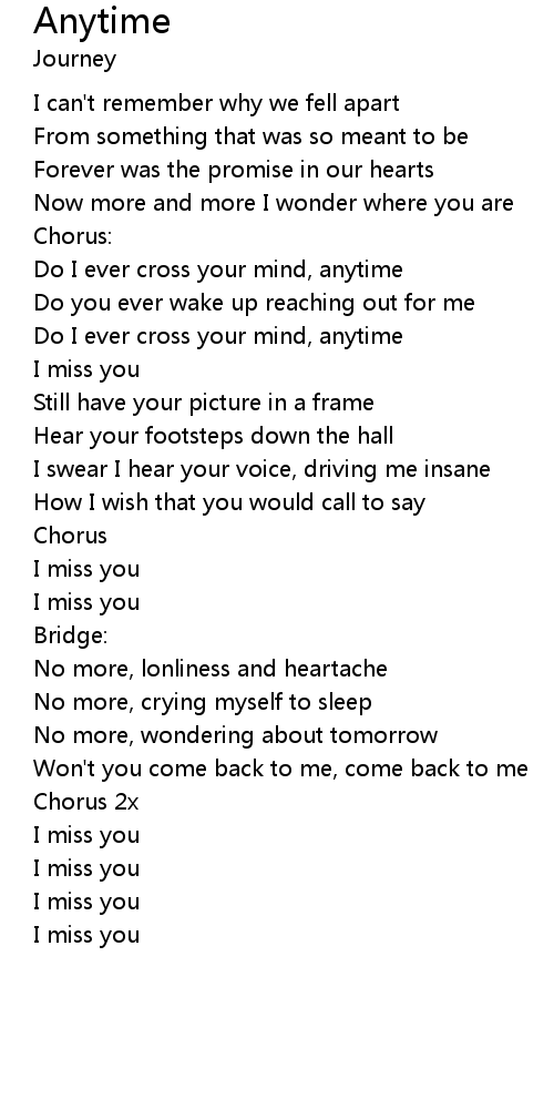 | Do I ever cross your mind, anytime | |