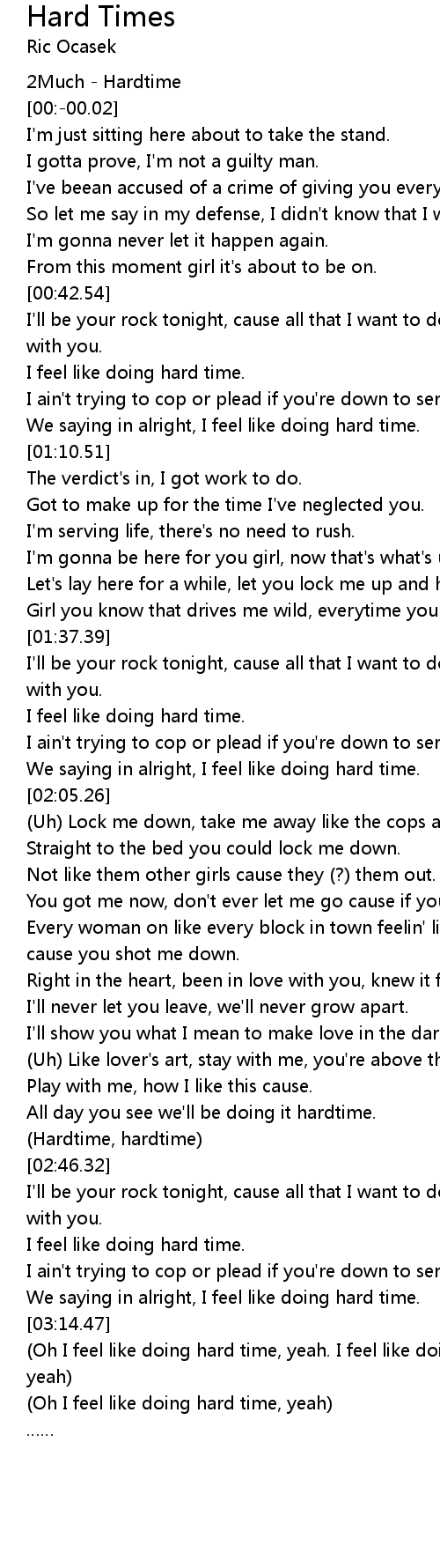 | [03:14.80] | (Oh I feel like doing hard time, yeah. I feel like doing hard time, yeah) |