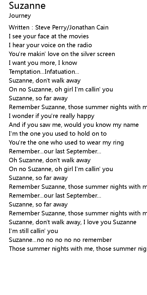 | Suzanne, don' t walk away, I love you Suzanne | |