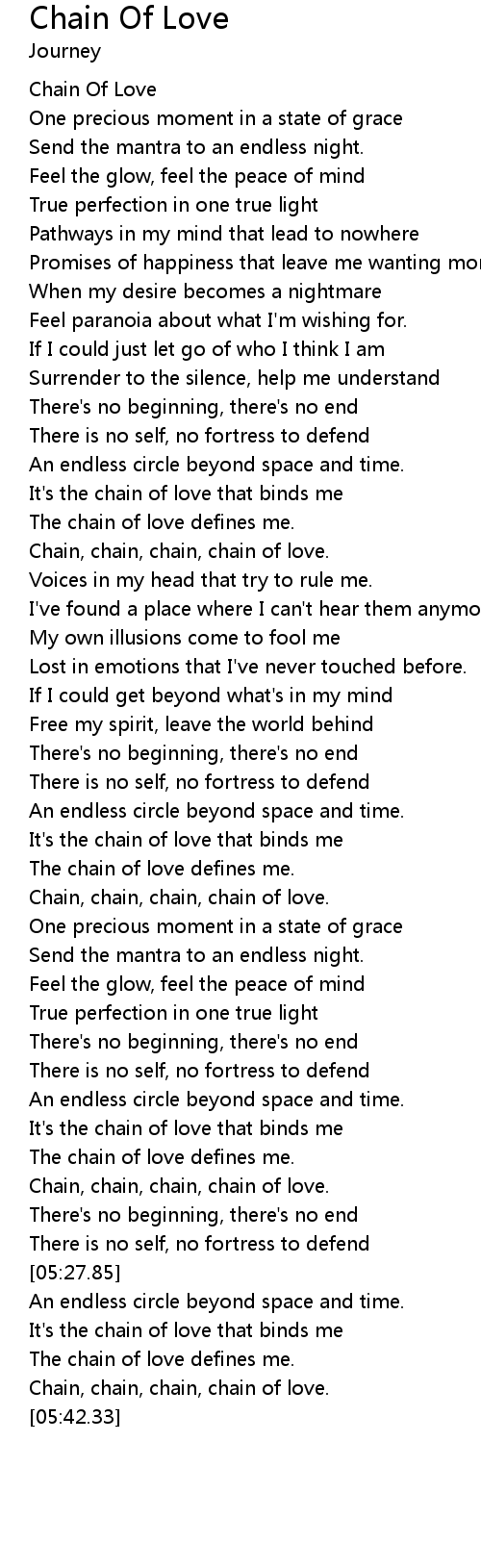 | [05:13.67] | Chain, chain, chain, chain of love. |