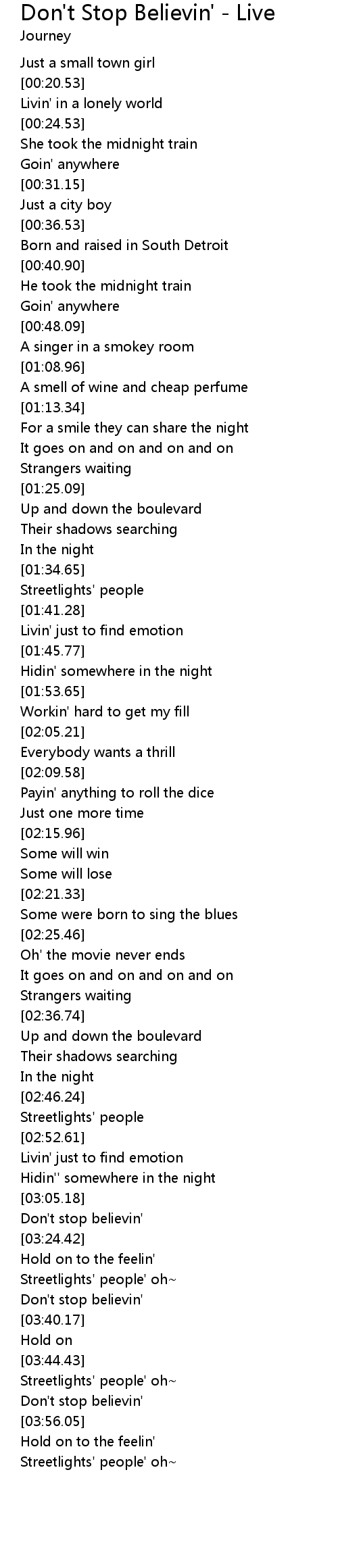 [03:21.55] Don't stop believin'