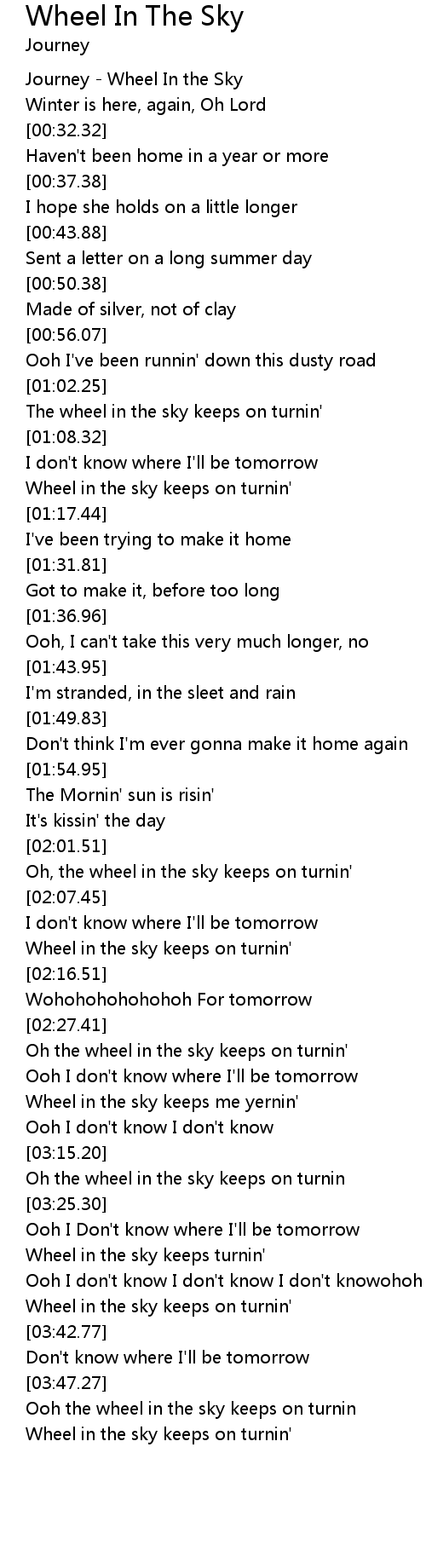 | [01:14.19] | Wheel in the sky keeps on turnin' |
