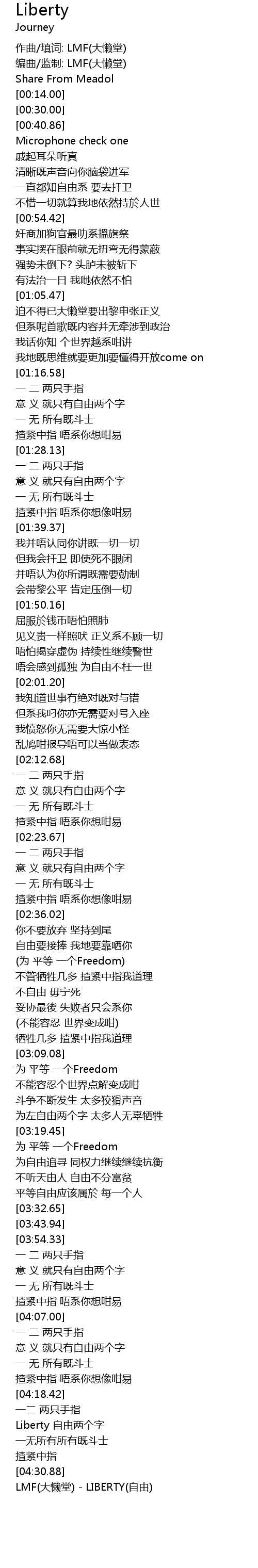 | [04:36.83] | LMF(大懒堂) - LIBERTY(自由) |