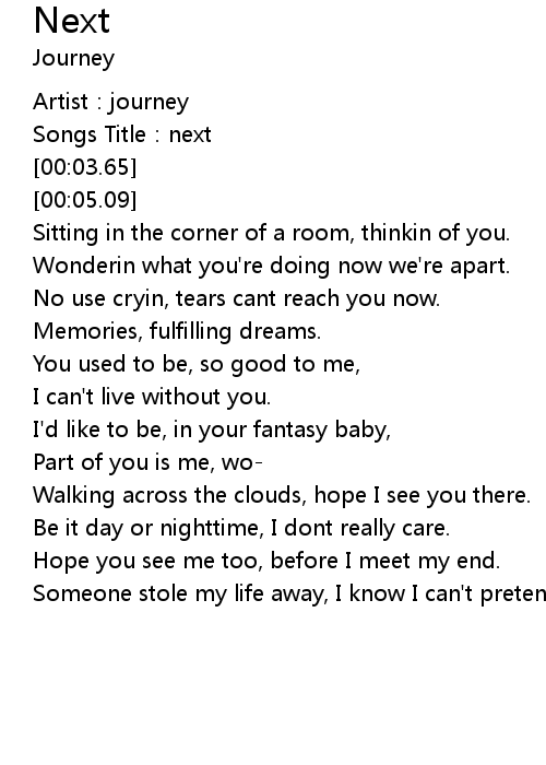 | [02:20.65] | Walking across the clouds, hope I see you there. |