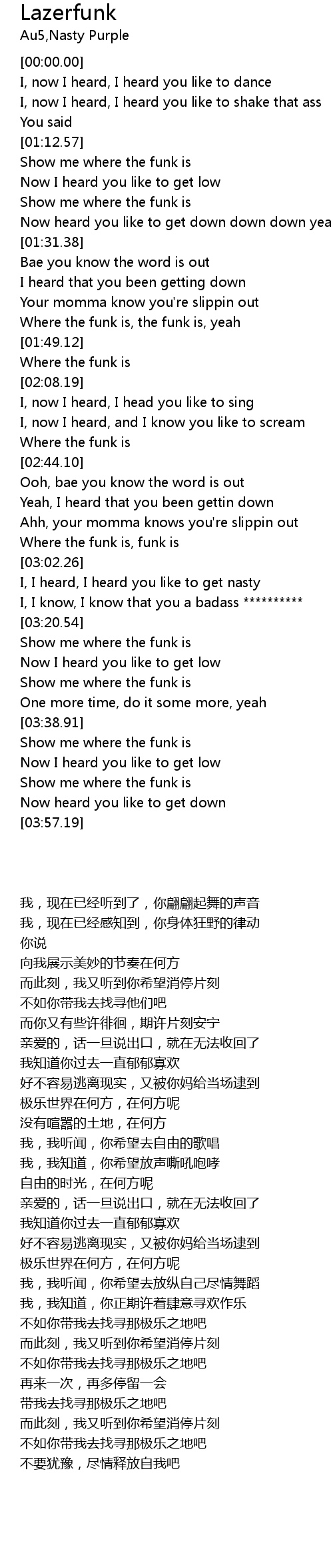 | [03:29.71] | Show me where the funk is |