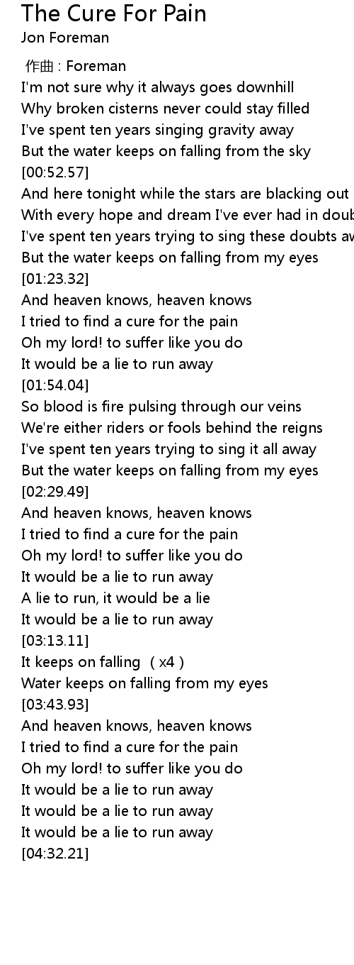 | [01:17.00] | But the water keeps on falling from my eyes |
