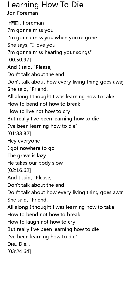 | [01:32.98] | I' ve been learning how to die" |