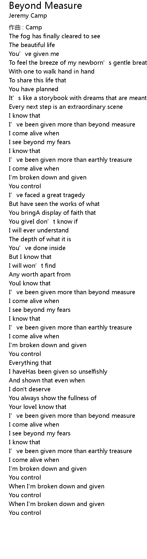 | I' ve been given more than beyond measure | |