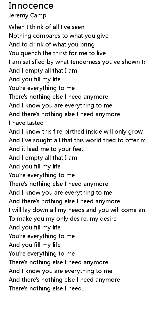 There's nothing else I need anymore |