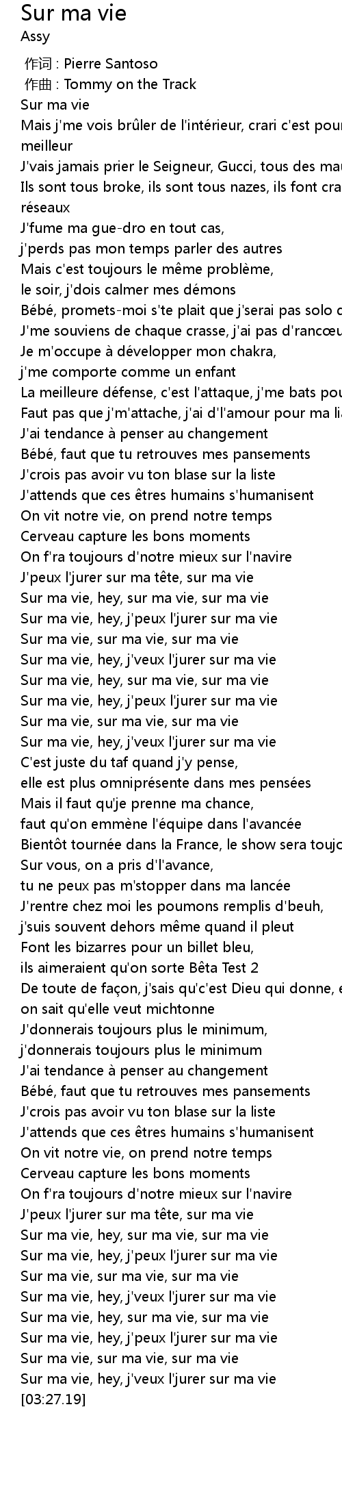 | [03:19.57] | Sur ma vie, sur ma vie, sur ma vie |