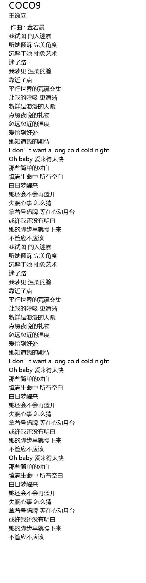 | [02:39.87] | I don’t want a long cold cold night |