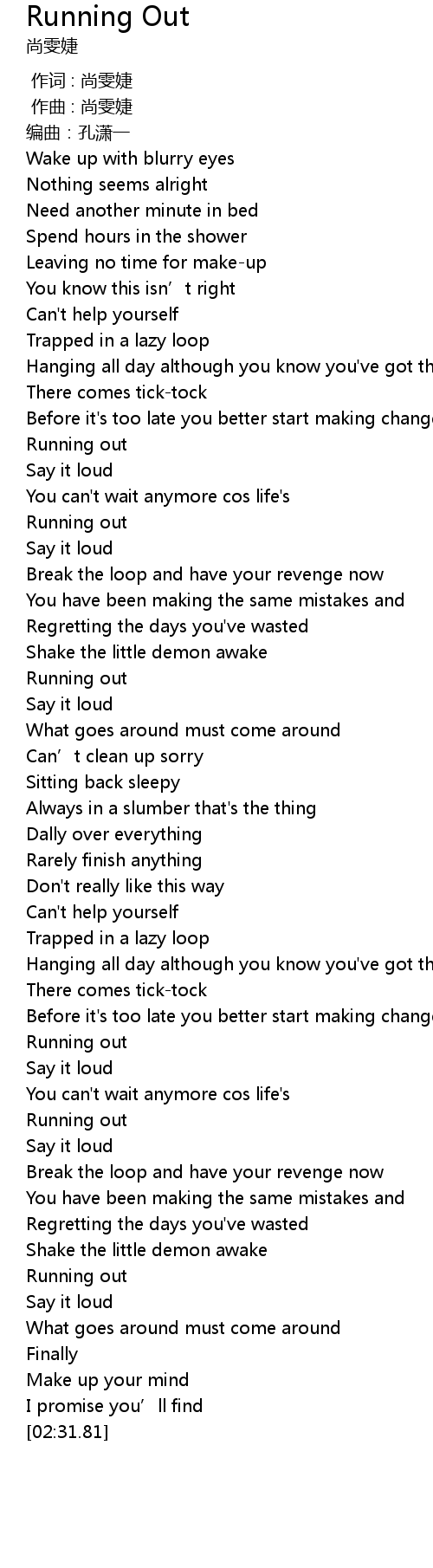 | [00:41.06] | Running out |